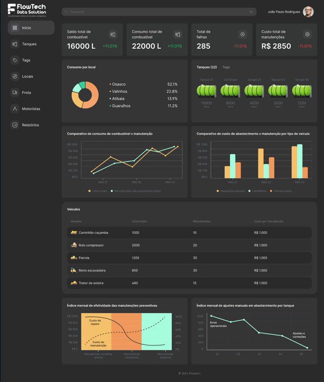 As soluções da Flowtech transformaram nossa gestão, proporcionando controle em tempo real e aumentando a eficiência das operações. Recomendo a todos que buscam inovação!